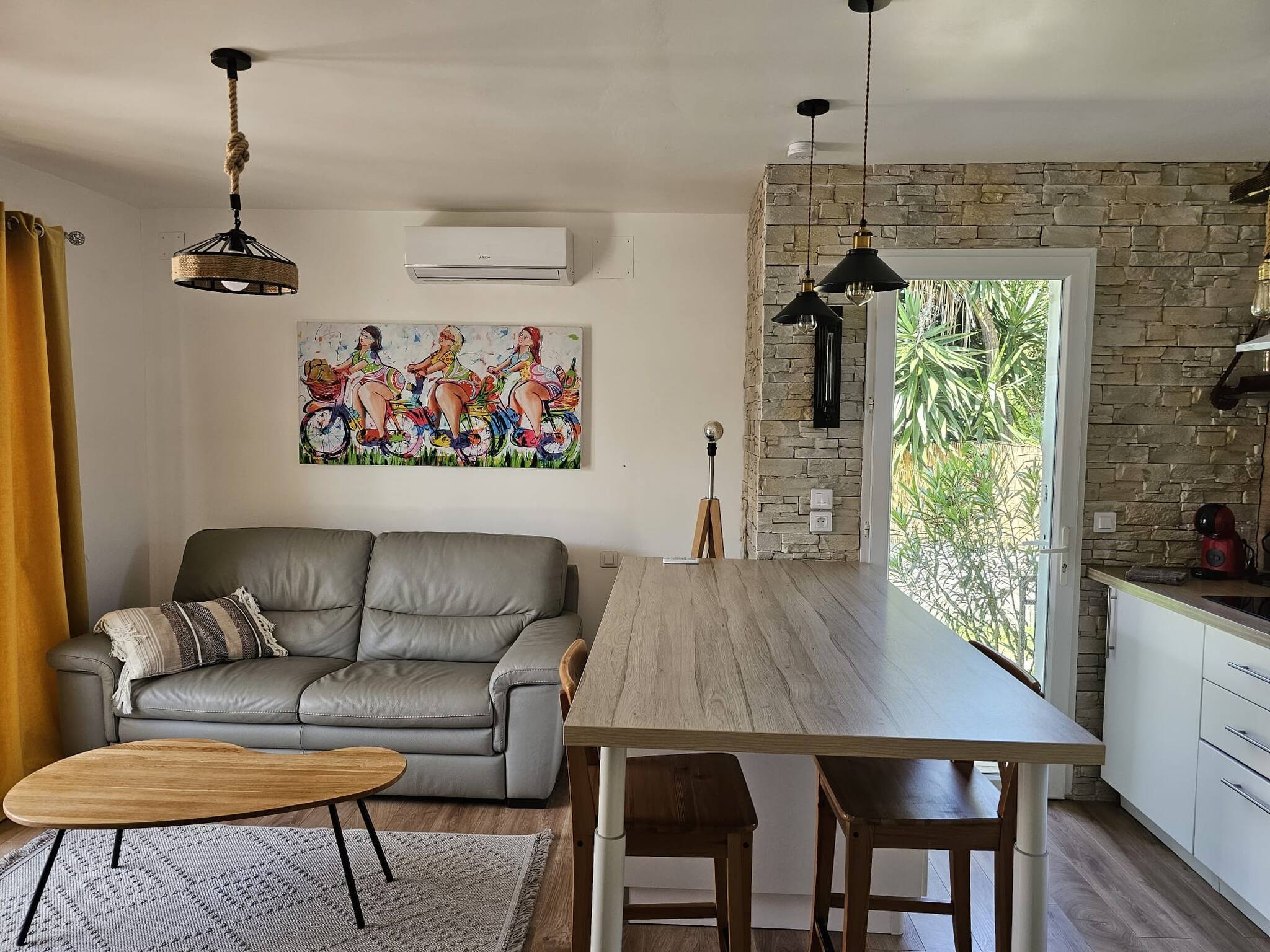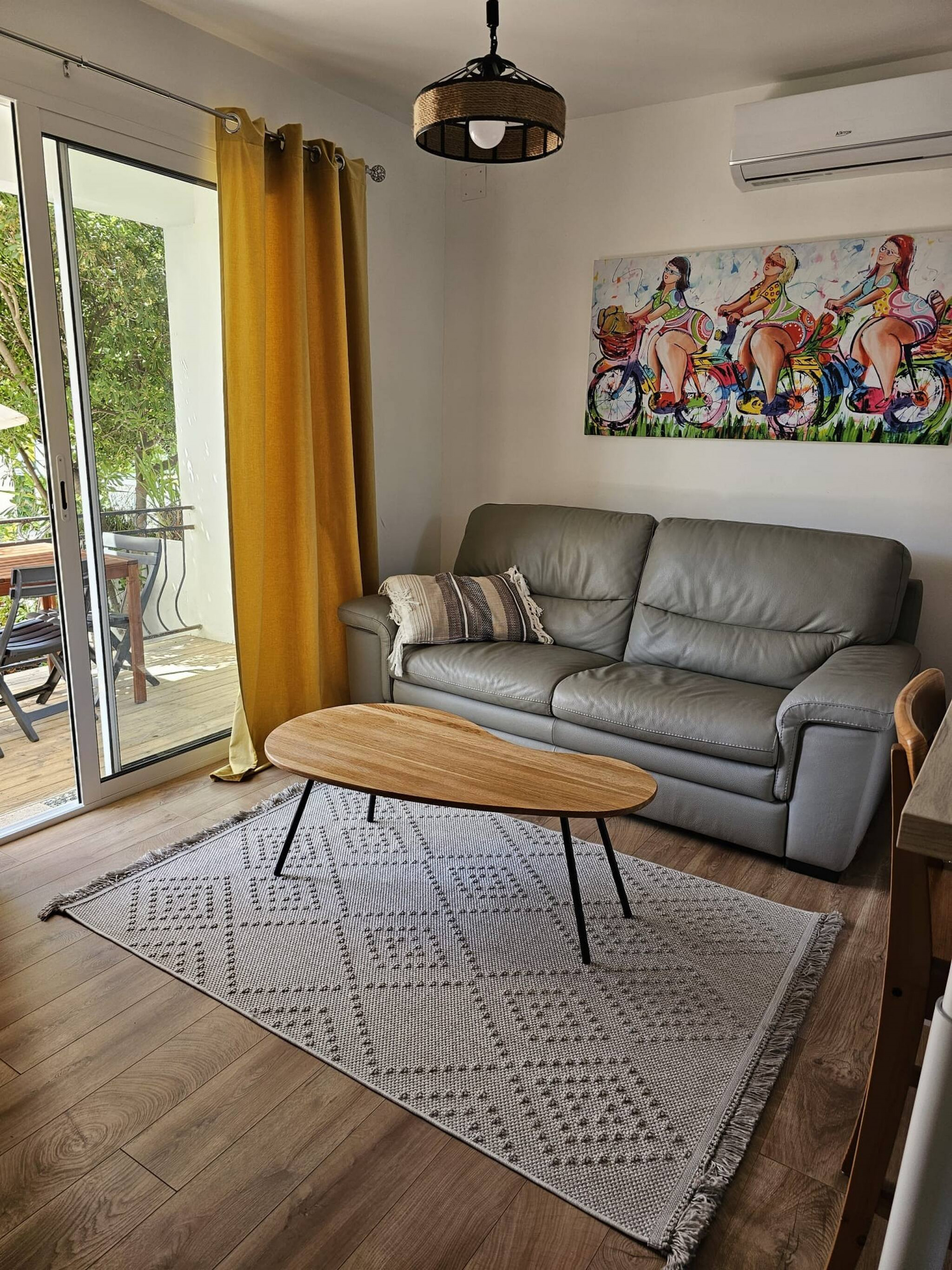 Comfortable air-conditioned apartment, semi-detached, on the ground floor, ideally located on the Giens peninsula, 500m walking distance from the Badine and Almanarre beaches.