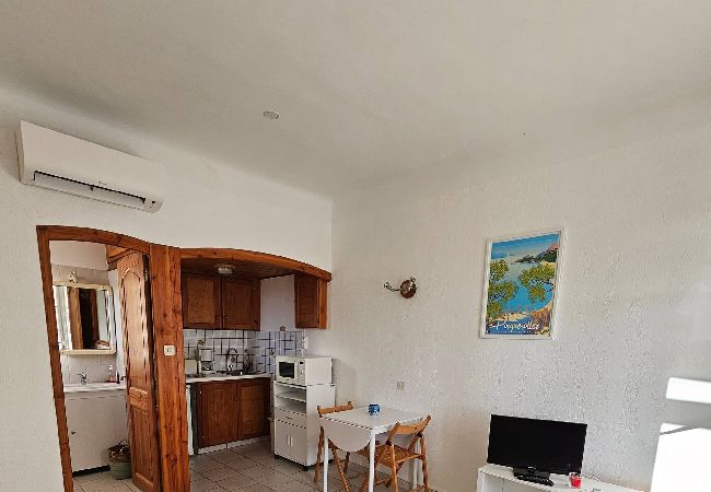 The apartment in Hyères has 1 bedrooms and has capacity for 2 people. The apartment is charming, has an exterior, and is 18 m². The property is located 100 m from Plage sand beach, 250 m from Plage des Pesquiers sand beach, 500 m from Port Saint Pierre (Hyères) city, 500 m from Carrefour Contact supermarket, 2 km from La Capte city, 2 km from Aéroport Toulon - Hyères airport, 3 km from Plage de l'Almanarre sand beach, 5 km from Gare d'Hyères train station, 5 km from Leclerc, Auchan, Intermarché, Chronodrive supermarket, 6 km from Hyères city. The house is situated in a lively neighborhood next to the sea.The accommodation is equipped with the following items: 10 m² terrace, iron, heat pump, air-conditioned, mosquito nets throughout the accommodation, 1 TV.In the hotplate of glass ceramics open plan kitchen, refrigerator, microwave, dishes/cutlery, kitchen utensils, coffee machine, toaster and kettle are provided.