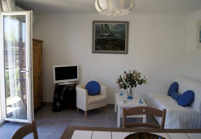 The apartment in Hyères has 1 bedrooms and has capacity for 2 people. The apartment is charming, has an exterior, and is 25 m². The property is located 12 m from Leclerc, Auchan, Intermarché, Chronodrive supermarket, 150 m from Petite alimentation supermarket, 900 m from Calanque du four à chaux sand beach, 2 km from Giens city, 2 km from Spar Giens supermarket, 2 km from Plage de l'Almanarre sand beach, 4 km from Plage de la Badine sand beach, 6 km from La Capte city, 10 km from Aéroport Toulon - Hyères airport, 12 km from Gare d'Hyères train station, 12 km from Hyères city. The house is situated in a residential neighborhood next to the sea.The accommodation is equipped with the following items: garden furniture, 12 m² terrace, washing machine, iron, internet (Wi-Fi), hair dryer, heat pump, air-conditioned, 1 TV.In the induction open plan kitchen, refrigerator, microwave, oven, freezer, dishes/cutlery, kitchen utensils, coffee machine, toaster and kettle are provided.