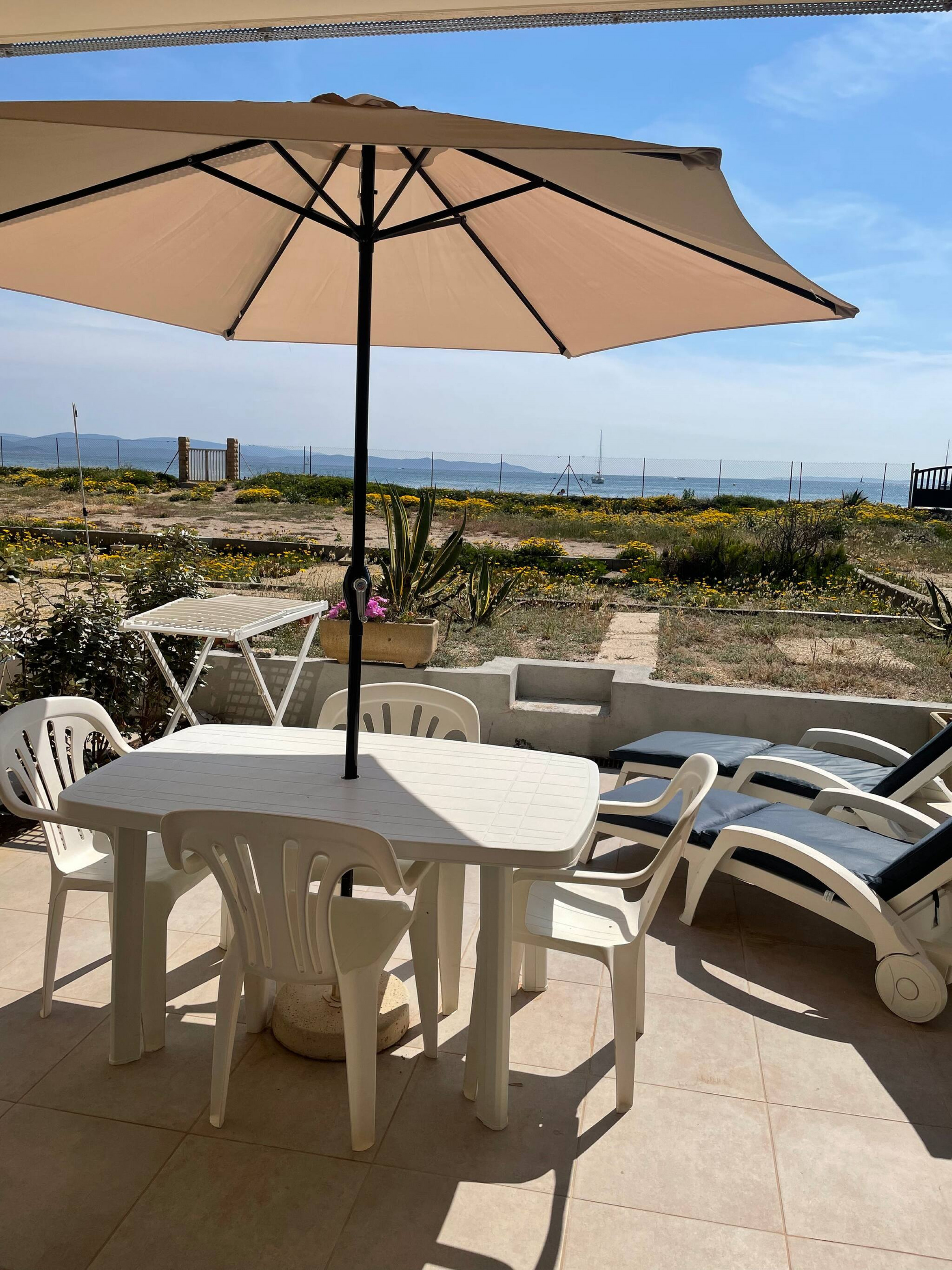 The apartment in Hyères has 1 bedrooms and has capacity for 4 people (max. 2 adults). The apartment is comfortable, has an exterior, and is 20 m². The property is located right next to the beach. It has views of waterfront and the garden. The property is located 30 m from Plage de la Bergerie sand beach, 300 m from Spar supermarket, 600 m from Les Halles du Pousset supermarket, 2 km from Petit Casino supermarket, 2 km from La Capte city, 3 km from Giens city, 3 km from Plage de l'Almanarre sand beach, 7 km from Aéroport Toulon - Hyères airport, 8 km from Gare d'Hyères train station, 9 km from Hyères city, 9 km from Leclerc, Auchan, Intermarché, Chronodrive supermarket. The house is situated in a family-friendly neighborhood next to the sea.The accommodation is equipped with the following items: garden, garden furniture, 10 m² terrace, internet (Wi-Fi), hair dryer, central heating, air-conditioned, open-air parking the same building, 1 TV, satellite tv (Languages: English).In the hotplate of glass ceramics open plan kitchen, refrigerator, microwave, oven, dishwasher, dishes/cutlery, kitchen utensils, coffee machine, toaster, kettle and hob are provided.