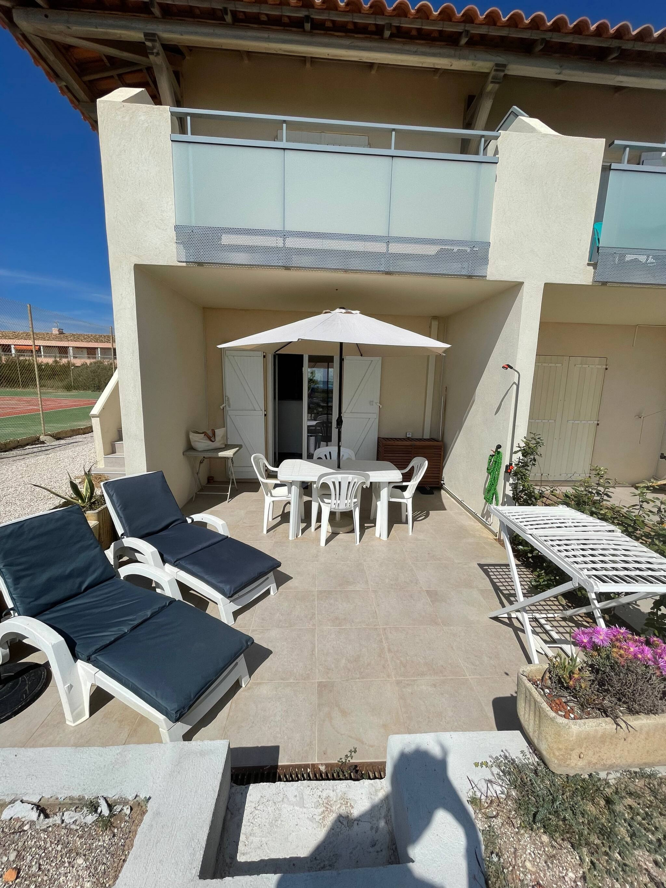 Large air-conditioned apartment on the first floor of a residence 30m from the beach at Vieux Salins d'Hyères (Les Marines du Levant).