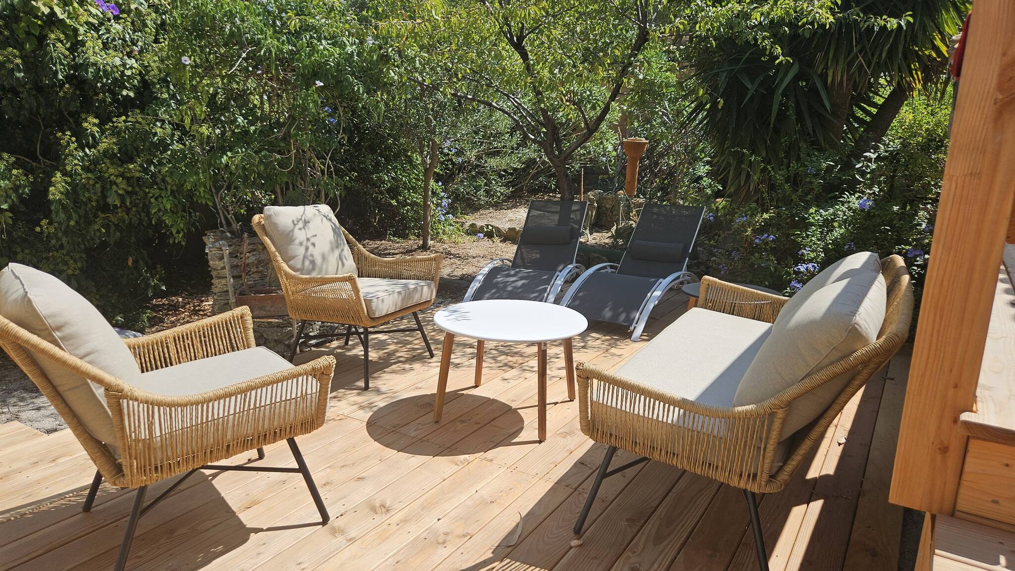 The south-facing villa combines a rustic French style with basic comfort, with: