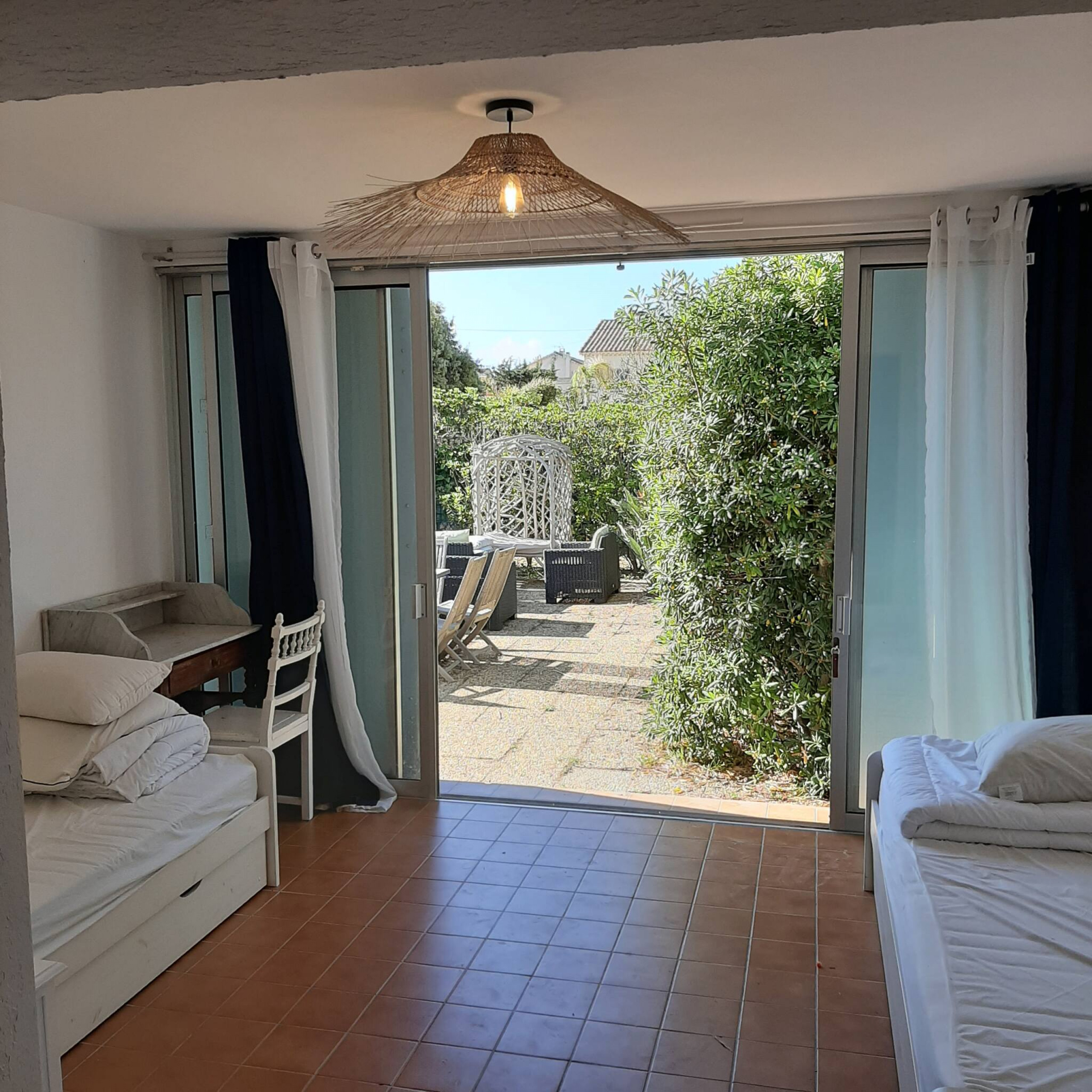The house in Hyères has 3 bedrooms and has capacity for 9 people.