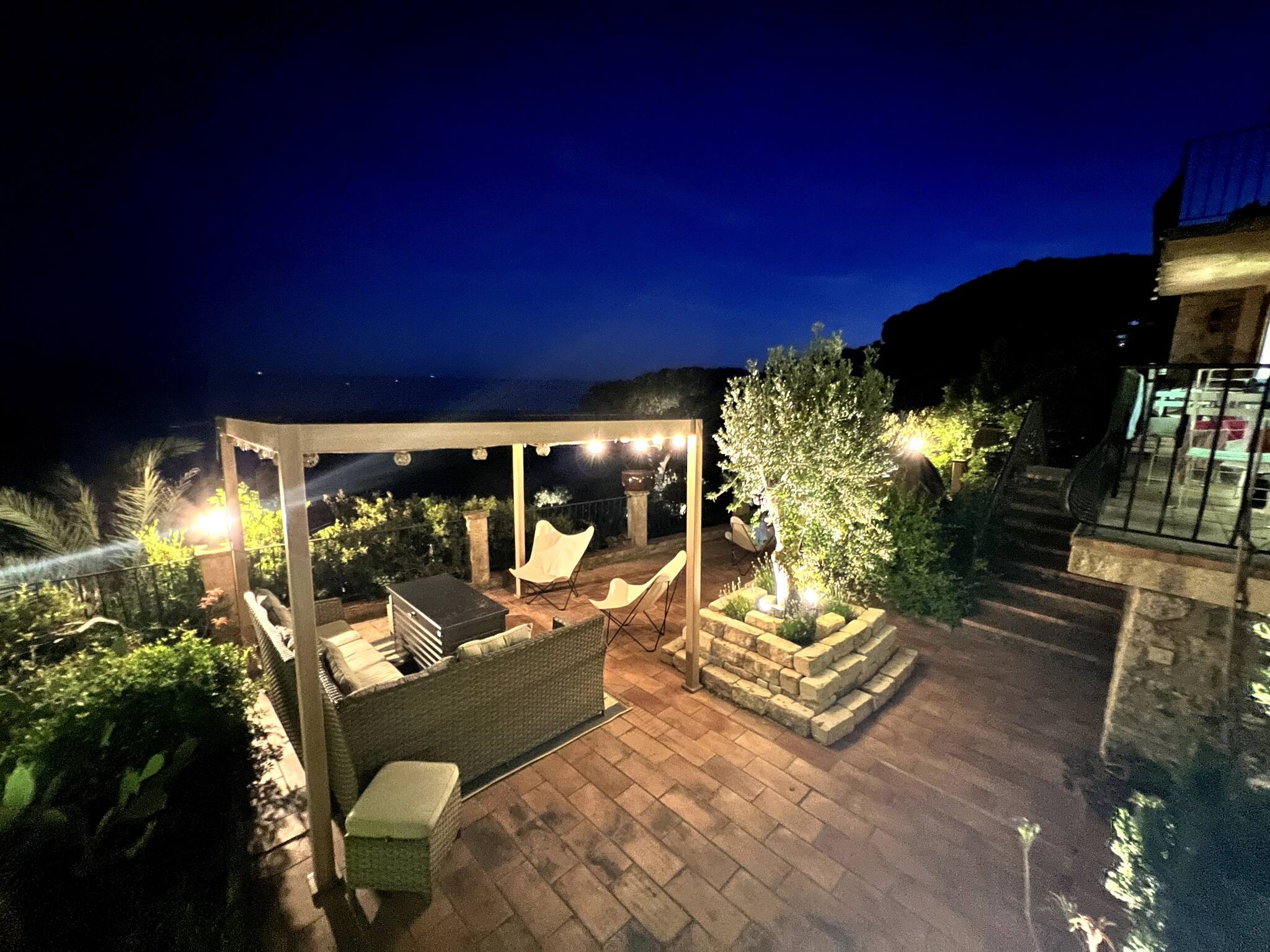 Imagine dining with family or friends, outdoors on a spacious terrace, surrounded by a panoramic view of the Mediterranean. With plenty of seating, this terrace is perfect for peaceful lunches, romantic dinners, sunset aperitifs or even special celebrations.