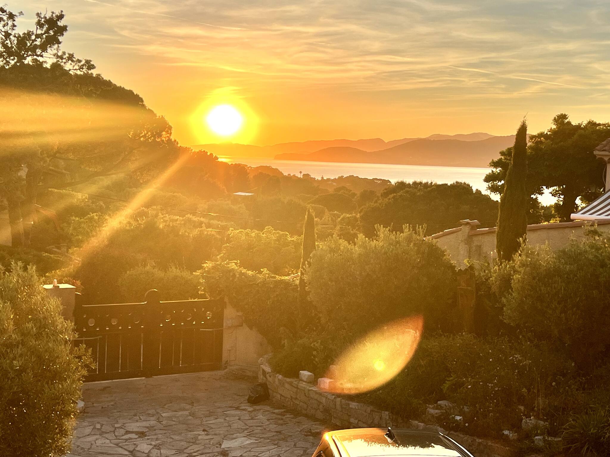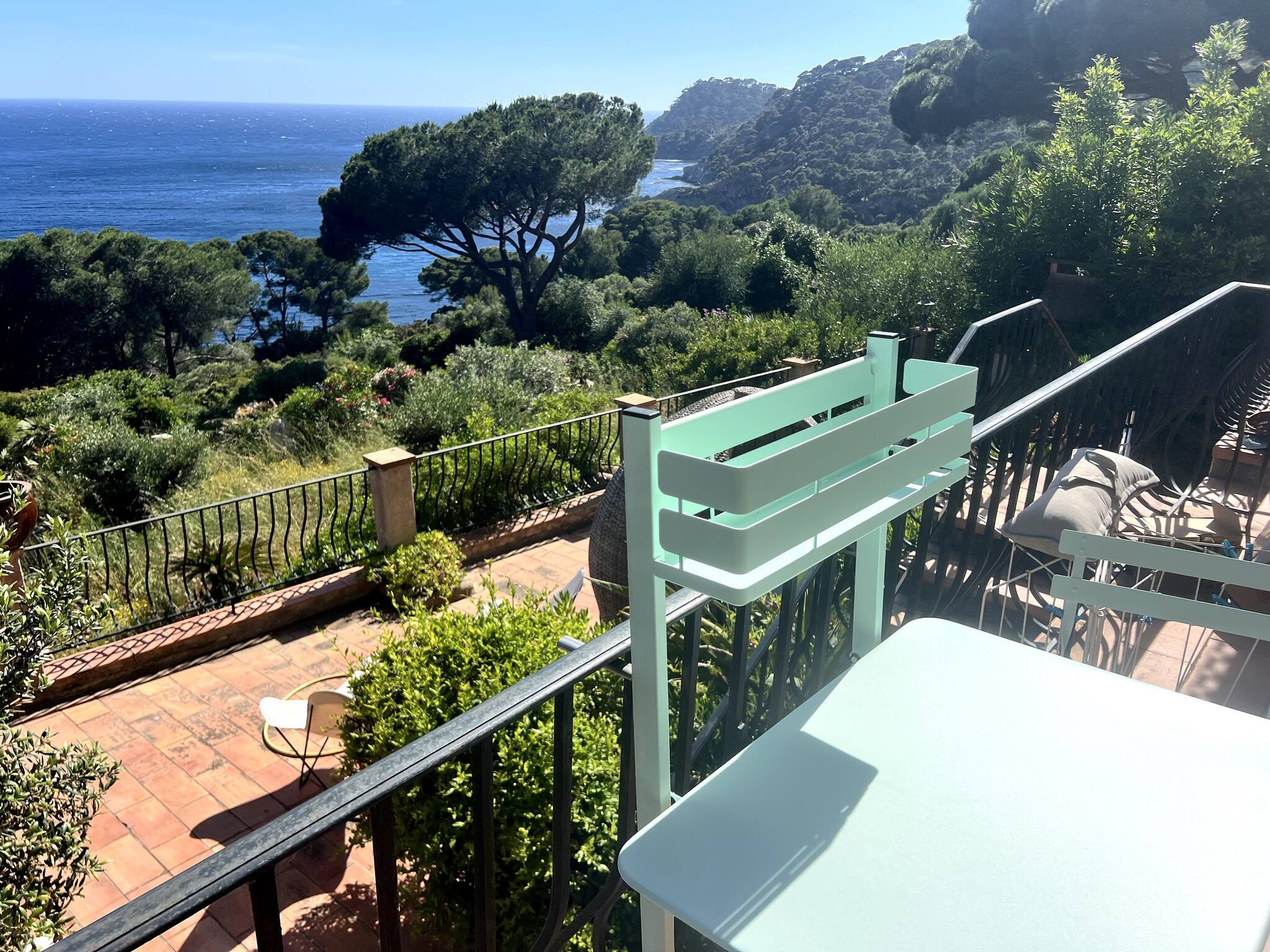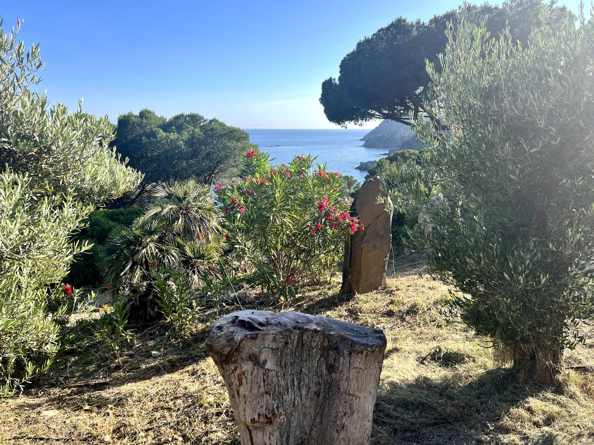 Nestled in the heart of a secure estate, this south-facing property overlooking the Mediterranean offers a private seaside oasis, with a magnificent spacious terrace offering an unobstructed view and a lush garden shaded by majestic century-old olive trees. From your garden, take a private and secure but "sporty" path to discover isolated coves.