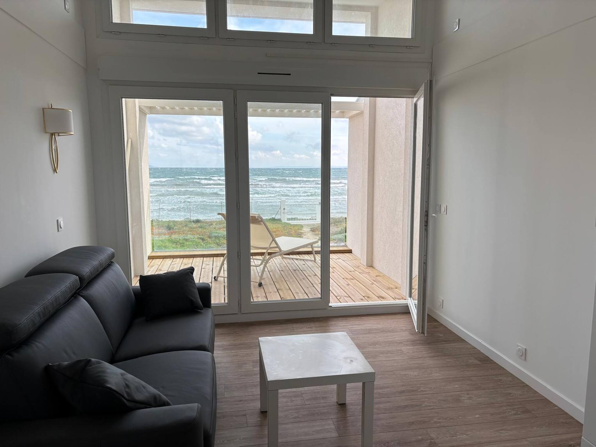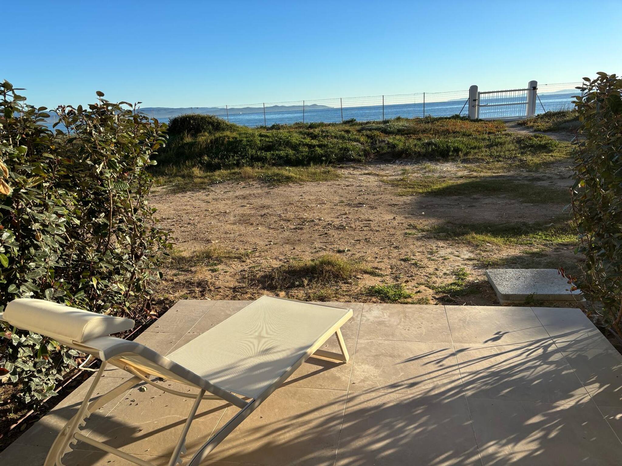 Terrasse vue mer avec portillon pour accès direct à la plage.
