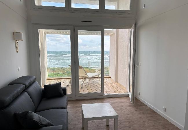 🏡 Rez-de-chaussée : salon lumineux avec canapé-lit très confortable, donnant sur la terrasse et la plage, cuisine entièrement équipée ouverte sur l’espace repas, ❄️🔥 climatisation réversible pour le confort été comme hiver, salle de bain et WC.