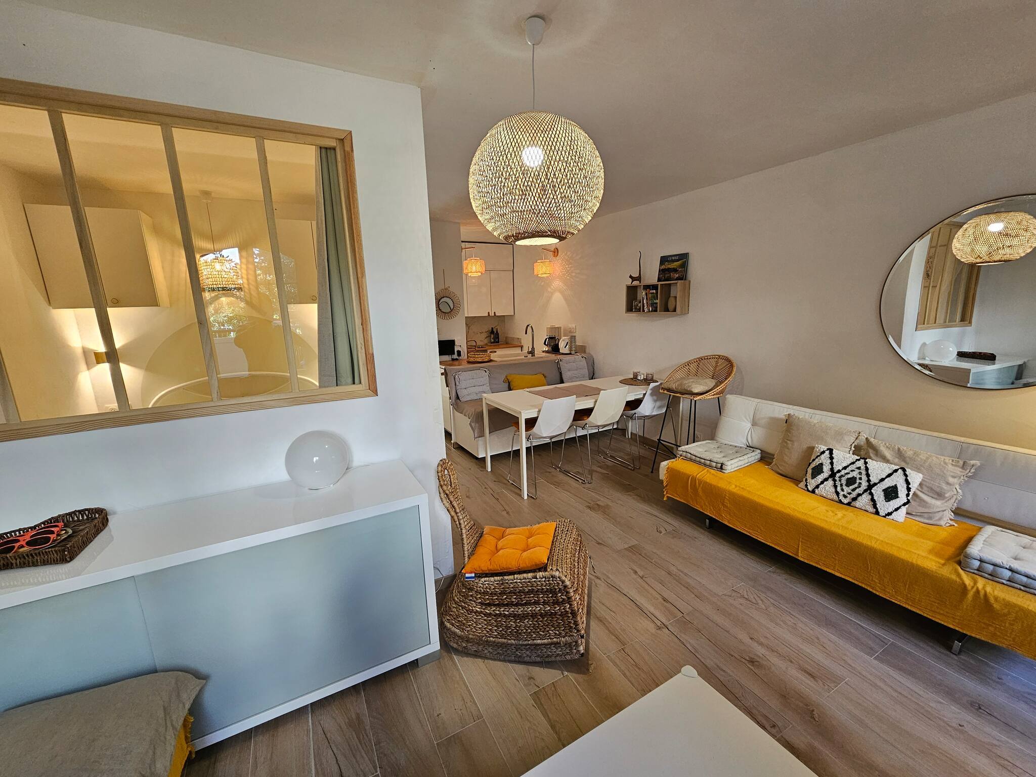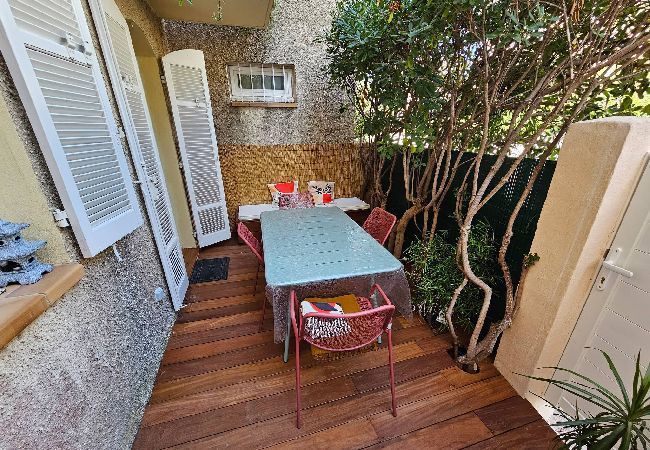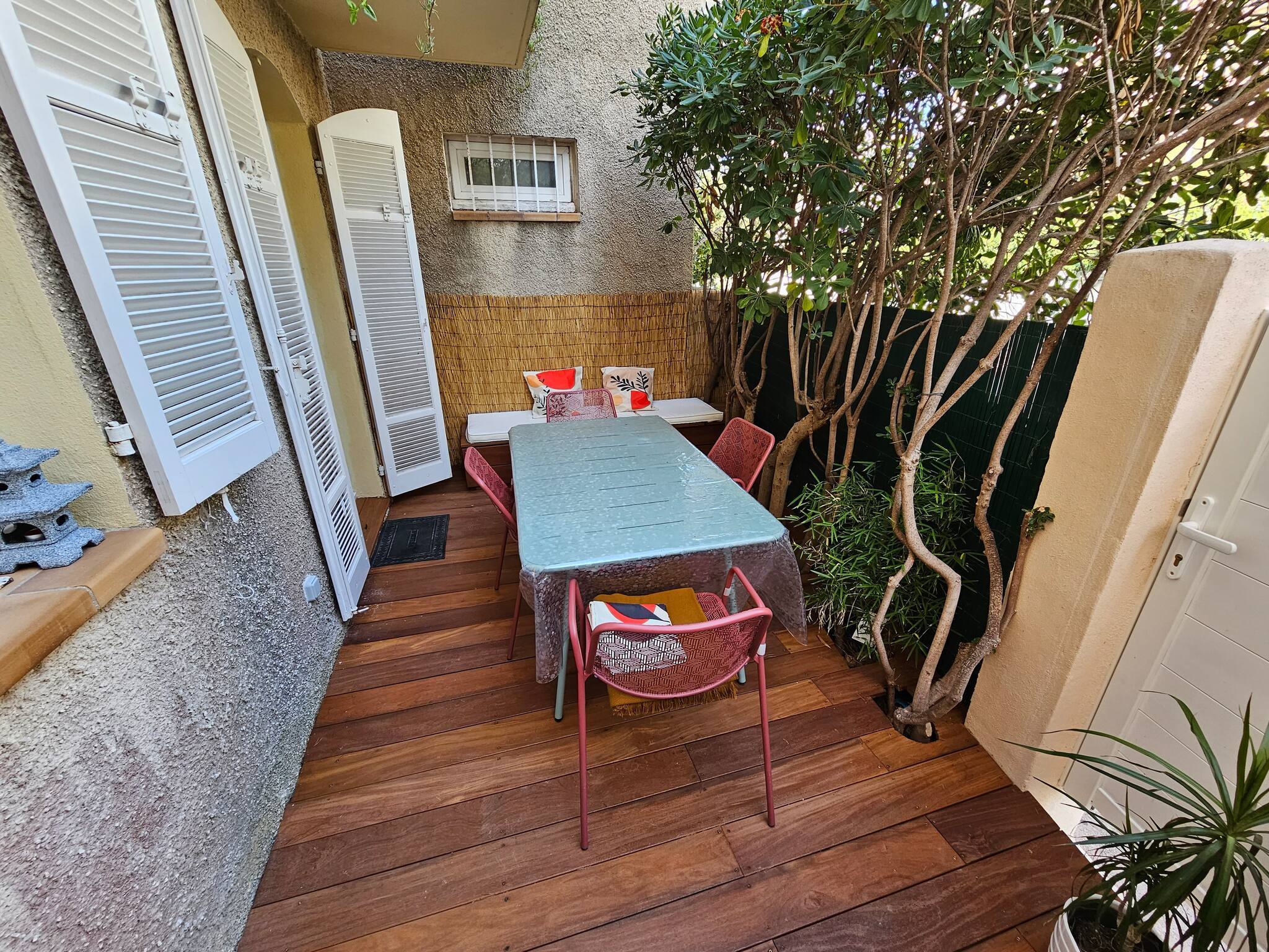 Studio lumineux avec terrasse, clim et parking réservé, idéal famille ou amis (2 adultes + 2 enfants), à 300 m de la plage de la Badine 🌊 sur la presqu’île de Giens.