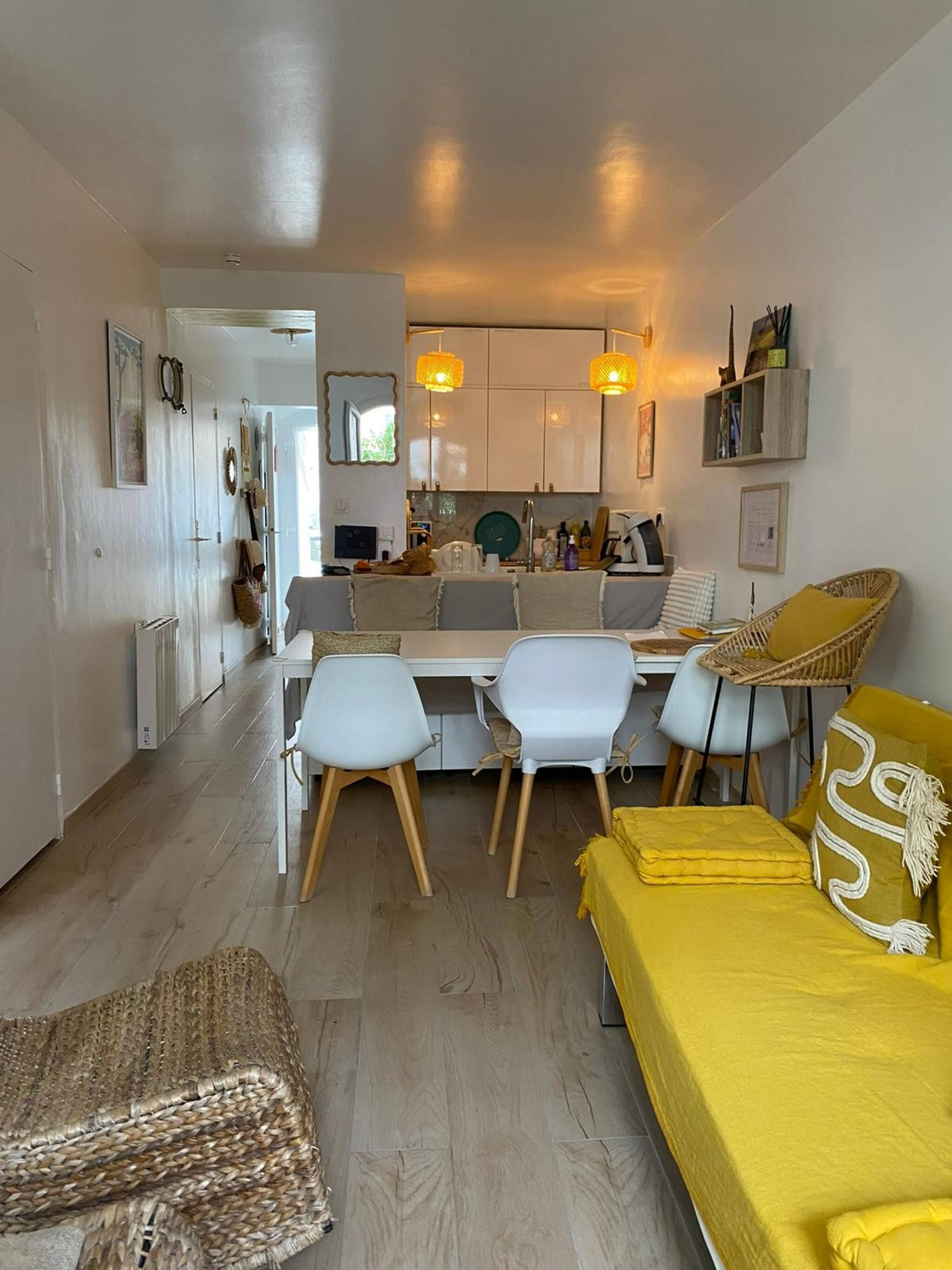 Le studio se compose d'une pièce de vie avec un canapé clic-clac pour le couchage, un couloir avec 2 lits superposés "cabine" idéal pour des enfants, une salle d'eau et 1 wc séparé.