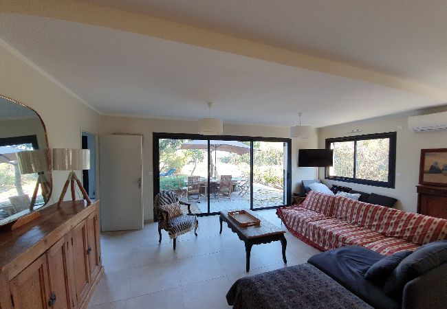 Exposé Ouest, en rez-de-jardin à 50 m de la plage et à 10 minutes à pied du village de La Capte avec tous ses commerces.