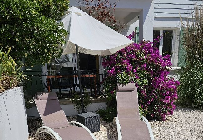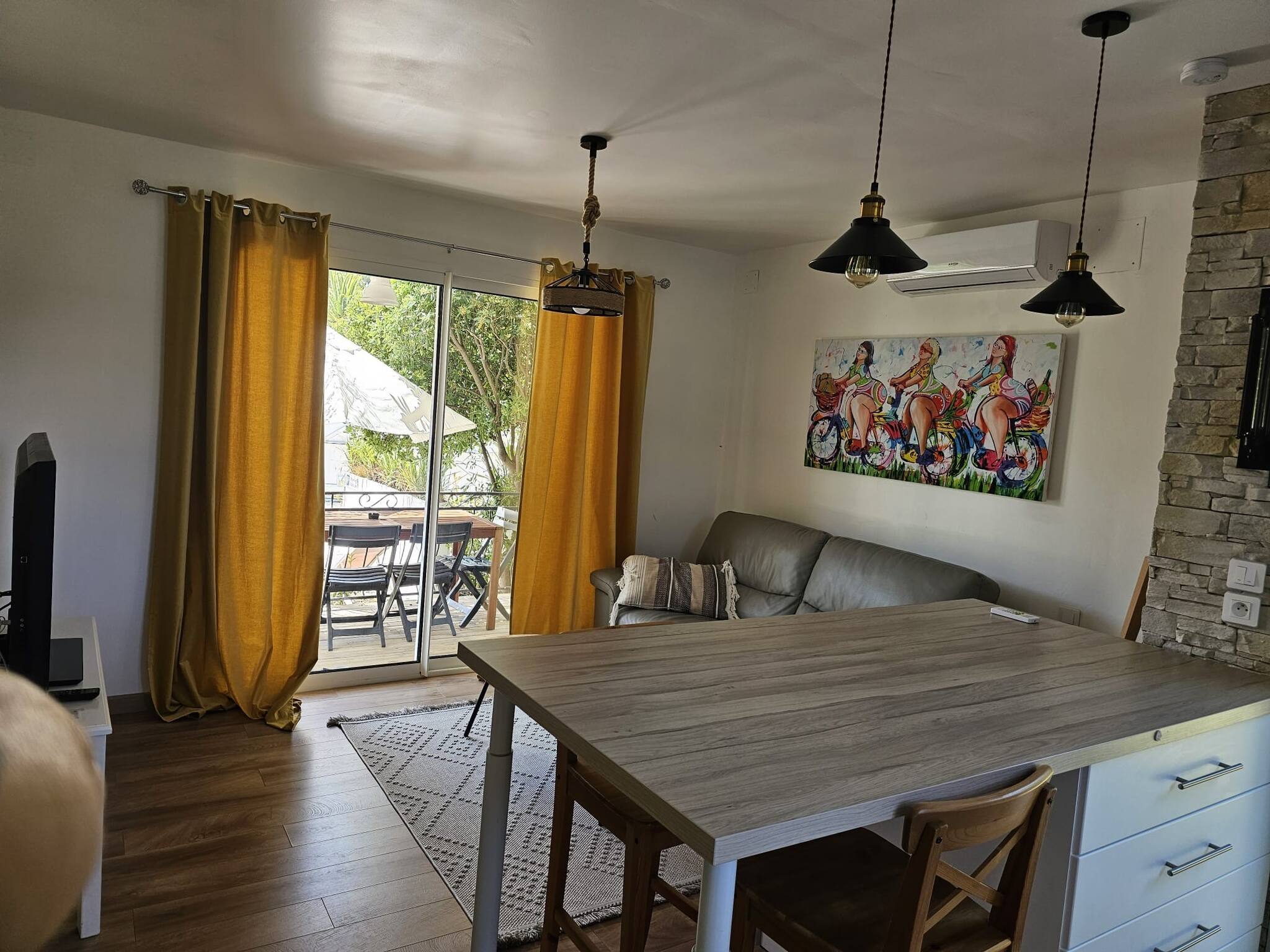 Confortable appartement climatisé, mitoyen, en rez-de-jardin, idéalement situé sur le presqu'île de Giens, à 500m à pied des plages de la Badine et de l'Almanarre.