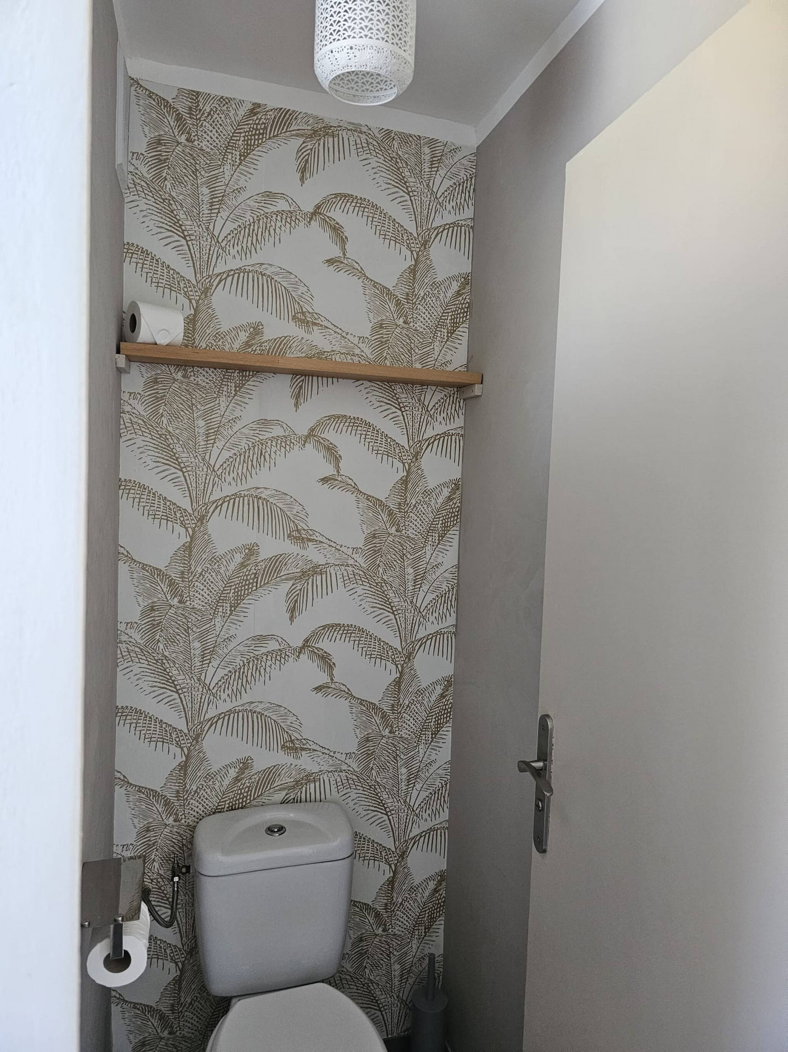 Il se compose d'une chambre, d'une salle d'eau, de wc séparés, d'une cuisine ouverte sur le salon donnant sur une terrasse couverte donnant sur le jardin d'environ 100 m².