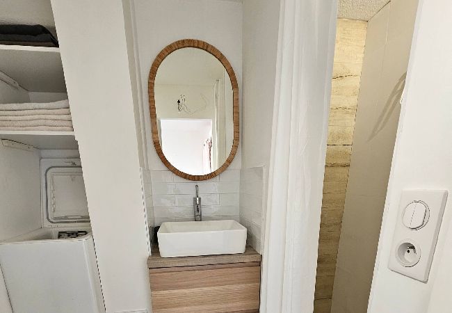 Studio 4 personnes climatisé, avec cuisine équipe, 4 couchages (2 adultes + 2 enfants), salle de bain avec douche à l’italienne.