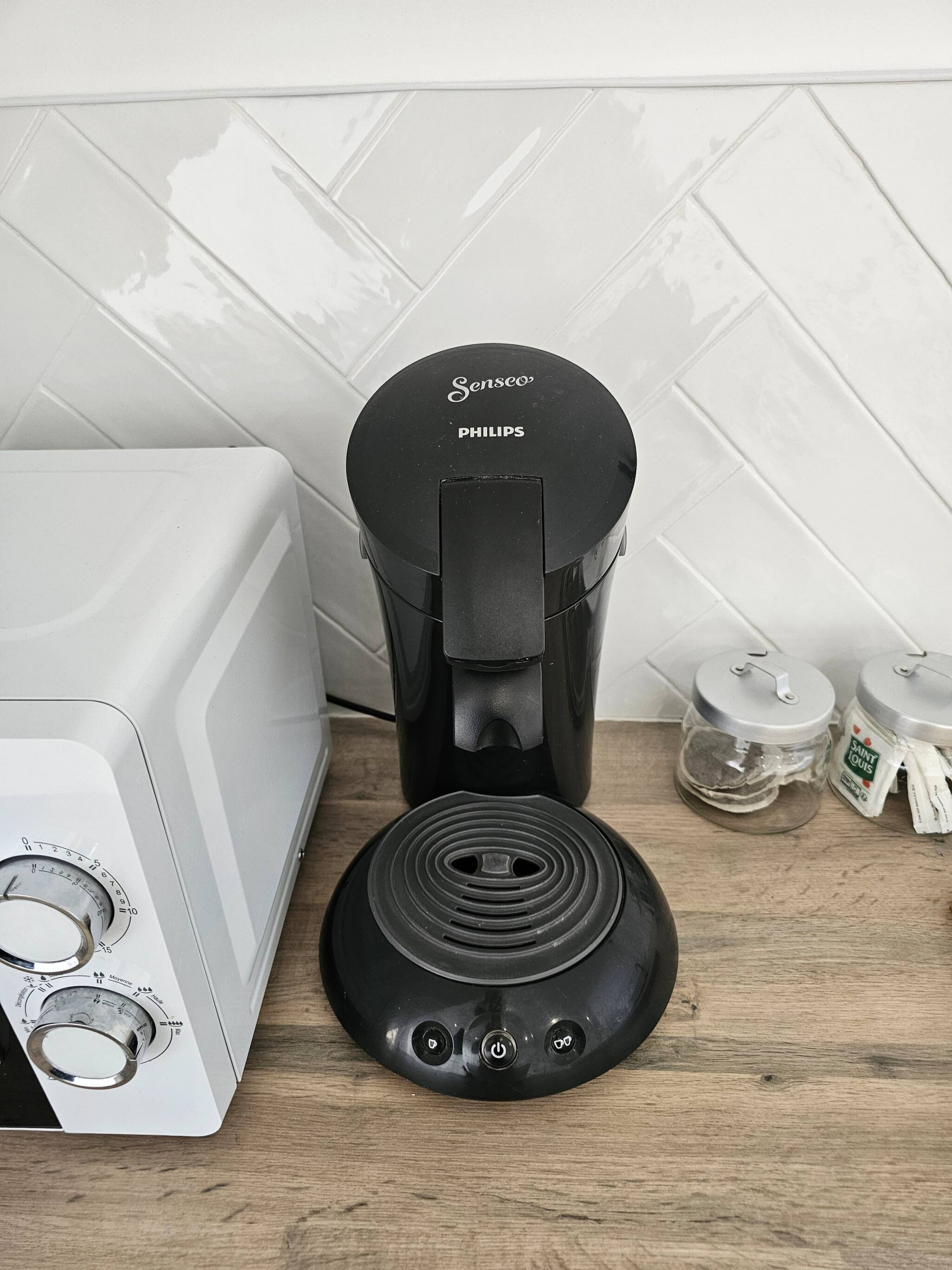 Le logement se compose d’un séjour agréable avec espace repas, d’une cuisine équipée : plaques de cuisson, four/micro-ondes, réfrigérateur, cafetière SENSEO, vaisselle et ustensiles pour cuisiner facilement. Accès direct à la terrasse, parfaite pour les repas ou petits-déjeuners au soleil.