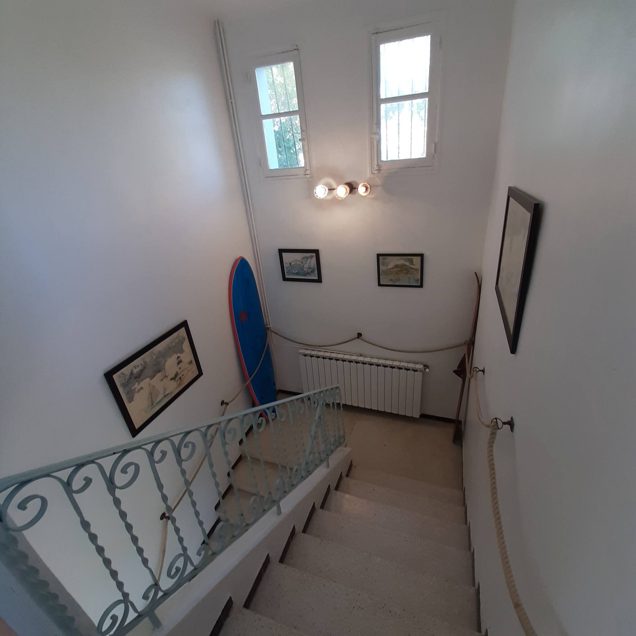 Grande maison familiale climatisée de 5 pièces de 140 m² des années 1960, sans rénovation récente, à 80 mètres à pied de la plage de la Bergerie sur la presqu'île de Giens;