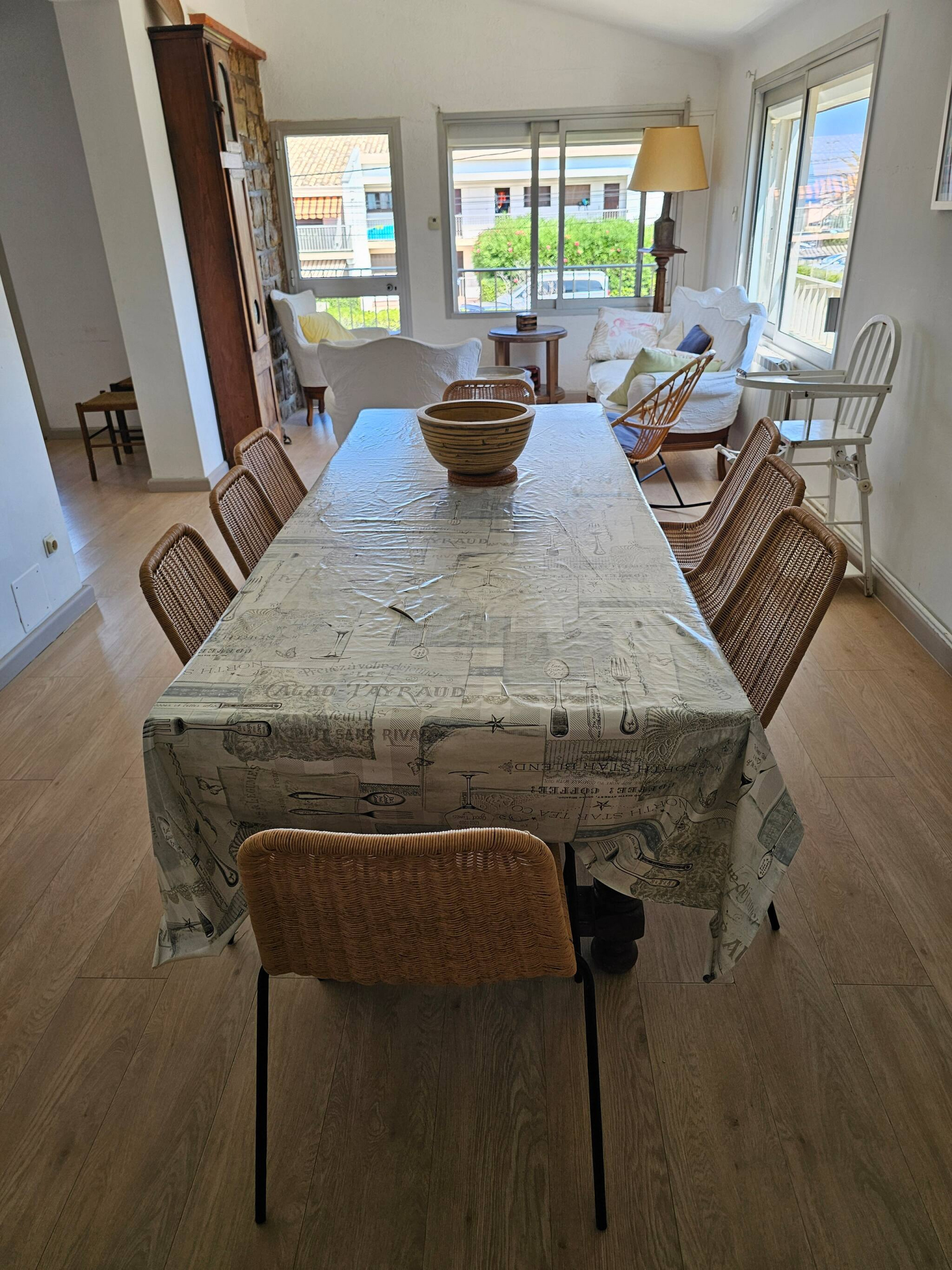 3 chambres climatisées, 2 doubles et une grande "dortoir", grand salon et salle à manger climatisés, cuisine semi-ouverte, 2 wc, 2 salles de bain et un espace extérieur avec plancha, petit réfrigérateur et évier, un grand jardin et un terrain de boules