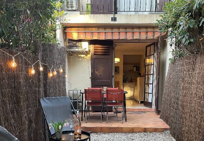 L’espace extérieur de 15m2 propose un coin repas avec une plancha et des transats pour se prélasser.